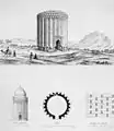 Паскаль Косте. «Вежа Тугрул, руїна і місті Рей», фасад. план і реконструкція.