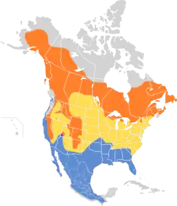 Влітку вид поширений у північних районах Північної Америки від Аляски і до Ньюфаундленду і Лабрадору, за винятком полярних районів. На зиму мігрує на Південь до південних штатів США, Мексики та Карибів. Трапляється у тундрових болотистих місцевостях, ховаючись у густі чагарники, між травою, гнізда робить у заглибинах під купами хмизу, під густими чагарниками тощо.