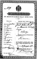 Паспорт, який видавався у Чорногорії в 1887 році (до появи фотографії, замість неї був текстовий опис власника).