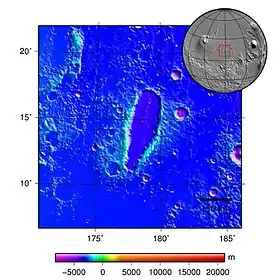![]() Мапа висот, відцентрована на Orcus Patera | |