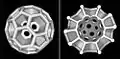 На рівні живих клітин, пінні патерни поширені; радіолярії, спікули губок, силікофлагеллятні екзоскелети та кальцитні скелети морських їжаків, всі нагадують мінеральні зліпки плівок піни Плато[67][68]. Скелет радіолярії Aulonia hexagona, намальований Геккелем, виглядає наче сфера, повністю складена шестикутниками, але це математично неможливо. Характеристика Ейлера стверджує, що для кожного опуклого багатогранника, кількість поверхонь плюс кількість вершин має дорівнювати кількості ребер плюс 2. З дотриманням цього, будь-який закритий багатогранник, складений шестикутниками, має включати точно 12 п'ятикутників, наприклад м'яч для футболу, геодезичний купол Фуллера чи молекули фулерену[69].