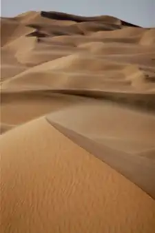 Хвилі переносять енергію по мірі руху. Механічні хвилі поширюються середовищем — воду чи повітря, змушуючи його коливатись при їх проходженні[58] Утворені вітром хвилі на поверхні води утворюють характерний хаотичний патерн на будь якому великому вмістищі води, хоча їх статистичну поведінку можна передбачити моделями для таких хвиль[59]. Коли звилі у воді чи вітер на поверхні проходять над піском, вони утворюють патерни рябі. Коли вітри дмухнуть над великою піщаною територією, вони утворюють дюни, деколи величезні дюнні поля як у пустелі Такла-Макан. Дюни можуть утворювати декілька патернів, у тому числі напівмісяці (бархани), дуже довгі прямі лінії, зірки, куполи, параболи, та поздовжні або Саїф ('меч') форми[60].
