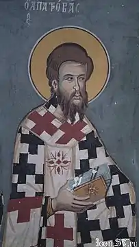 «Патров (грец. Πατροβας — батькові наступний) — один з 70 апостолів і ревний із супутників і співробітників апостола Павла. Переказ говорить, що він був єпископом Неаполя і Путеол і прийняв мученицький вінець за ім'я Христове».