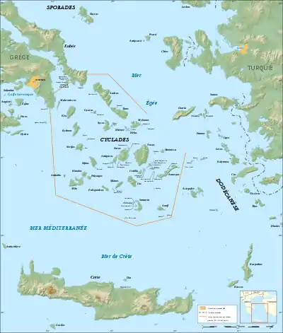 - на Кікладських островах — Тері (південний схід архіпелагу) та Кеа (північно-західна частина Кіклад неподалік від узбережжя Аттики). Тера стала командним центром єгипетської армії в Егеїді, а на Кеа для розміщення залоги обрали один з чотирьох полісів цього острова Корессос, котрий перейменували на Арсиною (на честь тієї самої цариці, через любов Птолемея до якої постраждав Сотад);