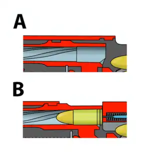 Для здійснення пострілу, гільзу патрона необхідно зафіксувати у патроннику. Це може бути виконано кількома способами: