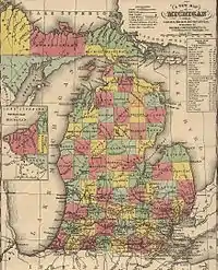 Базований в Ері, штат Пенсільванія протягом усієї своєї кар'єри, канонерський човен увійшов у стрій 29 вересня 1844. Першим капітаном був командер Вільям Інман. Оскільки Великі озера фактично є великими внутрішніми «морями» на півночі континенту, протягом кожної зими частини озер замерзають, припиняючи таким чином навігацію. Навіть коли проходи для суден були відкриті, айсберги робили зимову навігацію надзвичайно небезпечною та складною. «Мічиган», як правило, здійснював патрулювання з березня по грудень, а потім вирушав у Ері на зимову стоянку. Там було побудовано укриття, аби захистити корабель від дії зимової погоди. Протягом зими офіцери і екіпаж судна або залишилися у своїх будинках в Ері або в урядовому готелі біля причалу.[2]