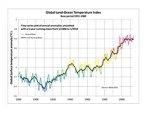 Нинішня пауза почалася приблизно в 1998 році з відносного спаду температури після Ель-Ніньйо. З тих пір, незважаючи на те, що продовжується накопичення теплової енергії за рахунок позитивного балансу енергії Землі, наявні температури на поверхні Землі показують більш повільні темпи зростання, ніж у попередньому десятилітті. Стабілізація температури є аномальною з точки зору відомих моделей глобального потепління.
