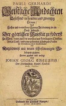 Пауль Герхардт (нім. Paul Gerhardt; 12 березня 1607, Грефенгайніхен, Саксонія — 27 травня 1676, Люббен, Бранденбург) — німецький лютеранський теолог.[4] Поряд з Мартіном Лютером є одним з найвизначніших авторів текстів для духовних лютеранських співів.