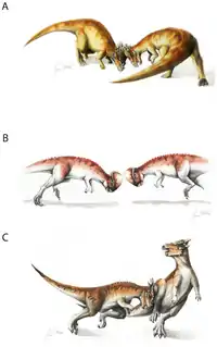 - Homalocephale — possible juvenile form of Prenocephale[2]