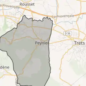 Муніципалітет розташований на відстані[2] близько 660 км на південний схід від Парижа, 28 км на північний схід від Марселя.