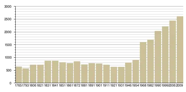 Динаміка населення (Baratier, Duby & Hildesheimer pour l’Ancien Régime[3] ; Insee[4], EHESS[5] pour les chiffres issus des recensements légaux ):