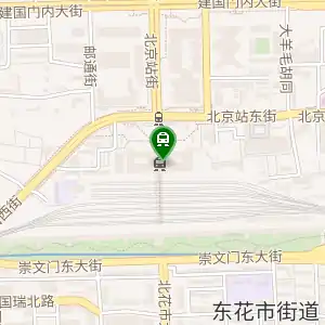 Вокзал розташований в центрі міста поруч з проспектом Цзяньгомень, в межах другої кільцевої автодороги. Потяги проходять через колишні міські ворота в Дунбяньмень.