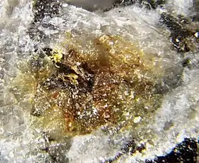 Входить до складу скарнів метасоматичного родов. басейну річок Рос і Пеллі (територія Юкон, Канада), знайдений також у Фресно (штат Каліфорнія), США.