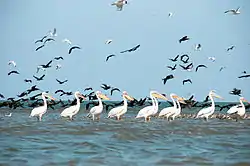 - Пелікан рожевий (Pelecanus onocrotalus).