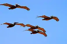 Ключ бурих пеліканів у польоті над Гаванською бухтою, 2006