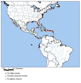 ![]() Поширення бурого пелікана | ||||||||||||||||