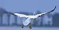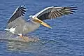 Рогодзьобий пелікан на взльоті