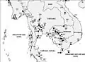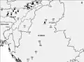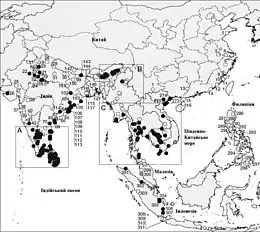 ![]() Розповсюдження сірого пелікана, загальна карта (з легендою) Ділянка А (з легендою) Ділянка B (з легендою) Ділянка C (з легендою) | ||||||||||||||||