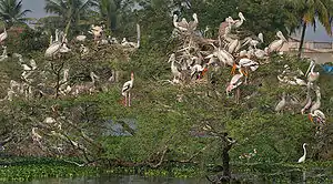 В М'янмі в 19-му сторіччі існувала незвичайна колонія (зараз зруйнована), що була розташована на деревах, розкиданих в заростях високої трави («слонова трава») на східному березі річки Ситтанг, розсіченему чисельними річищами тимчасових водотоків, завдяки яким на деяких ділянках ця територія була затоплена на глибину до 3 м в період з червня до жовтня або листопада. Гнізда були розташовані в кронах дерев Dipterocarpus, на дуже великій висоті (до 45 м), де вони були розміщені так тісно, що часто зливались одне з одним, виглядаючи як суцільне «ліжко».