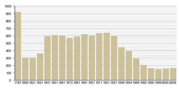 Динаміка населення (Base de données Cassini[3] і Insee[4] ):