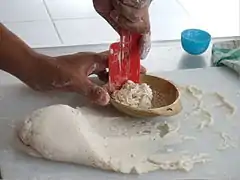 У фарш додається вода і засипається значна кількість борошна - як правило, сагового, рідше тапіокового. Зазвичай обсяг борошна можна порівняти з об'ємом риби. В результаті фарш виходить не дуже густим і в'язким, що відрізняє пемпек від іншої популярної індонезійської страви - баксо, виготовленого з особливого дрібного фаршу (як рибного, так і м'ясного) з додаванням дуже невеликої кількості борошна і яка здобуває в готовому вигляді дуже щільну і тугу консистенцію [7] [9] [10].