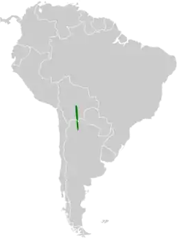 Незважаючи на назву, вид поширений вузькою смугою на східній стороні Анд у південній Болівії та північно-західній Аргентині. Населяє хмарний ліс в регіоні Юнга і воліє ділянки з великими деревами. Іноді трапляється на невеликих ділянках або в молодому вторинному лісі.[3][4]
