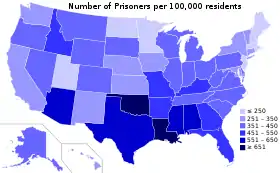 США є світовим лідером за кількістю в'язнів як загалом, так і у відсотковому співвідношенні, на сто тисяч населення, і відповідно мають найбільшу в світі пенітенціарну систему. Однією з особливостей США є наявність приватних тюрем, у яких утримується досить високий відсоток в'язнів.