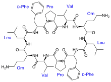 Антибіотики пригнічують ріст мікроорганізмів, як правило, бактеріальних клітин, локалізованих в організмі грибків і найпростіших. Класичними прикладом пептидних антибіотиків є тироцідин, тиротріцин, бацитрацин, граміцидин, валіноміцин, ліхеніформін, та інші.