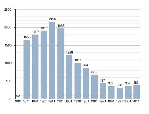 Станом на 31 грудня 2014 року в муніципалітеті офіційно проживали 32 іноземці з 9 країн, серед них 10 громадян країн Євросоюзу та 5 громадян України.[4]