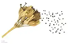 Суцвіття зонтикоподібне, однобічне, з обгорткою з лінійних листочків. Квітки правильні, зрослопелюсткові, на квітконіжках. Чашечка п'ятигранна, розсічена на п'ять трикутних зубців, після цвітіння здута. Віночок яскраво-жовтий, з довгою трубкою і п'ятизубчастим відгином. Тичинок п'ять, маточка одна з верхньою зав'яззю, одним стовпчиком (коротким або довгим у різних квітках) і головчастою приймочкою.