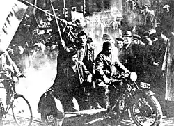 ![]() Душан Симович, король Югославії Петро II і професор Радоє Кнежевич у Лондоні в червні 1941 р. Петро II унаслідок перевороту був оголошений повнолітнім і зведений на престол. | |