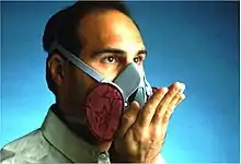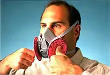 - У разі наявності клапана видиху, робітник закриває руками поверхню респіратора, і робить різкий вдих. Якщо він відчуває рух повітря, то респіратор надягнено недостатньо щільно.