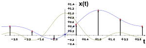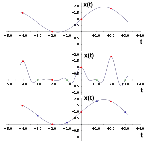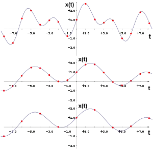де — i-й відлік сигналу, — момент часу, який відповідає цьому відліку, — циклічна частота дискретизації, — інтерпольоване значення сигналу в момент часу .