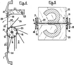 У найпростішому випадку картки встановлено на циліндрі 10, при цьому кожна кріпиться на власній осі 20. Для зміни символів використовується повертання циліндра навколо власної осі 8.
