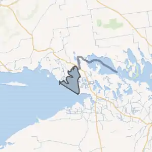 З заходу затока обмежена косою біля села Приморське. Зі сходу затока обмежує мис Картказак. На північно-східному узбережжі затоки виділяється Мала коса і кілька інших кос.