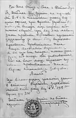 - Грамота Гетьмана Павла Скоропадського про відречення влади