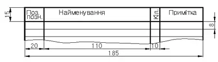 - у графі «Примітка» — технічні дані елемента, які не містяться в його найменуванні.