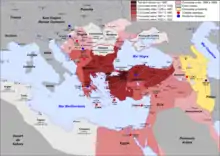 Карта територіального розширення Османської імперії з 1307 по 1683 рік.
