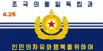 1948 - до тепер | Прапор Корейської народної армії | Початковий дизайн 1948 мав Герб Північної Кореї 1948. Сучасний герб зроблено у 1992. Девіз на прапорі: "Для об'єднання Батьківщини і звільнення народу" (조국의통립과 인민을위하여). |