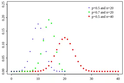 - Біноміальний розподіл, який описує кількість успіхів у серії незалежних експериментів «так/ні» з однаковою ймовірністю успіху.