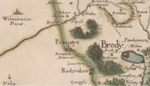 ![]() містечко Перенятин на карті Гійома де Боплана, 1650 рік (на мапі 1648 р. позначене як Preniatÿn) (на мапі 1648 р. позначене як Preniatÿn) | |