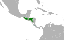 Вид поширений на півдні Мексики (Чіапас), в Гватемалі, Гондурасі, Сальвадорі, Нікарагуа та Коста-Риці. Природним середовищем існування є субтропічний або тропічний вологий гірський ліс.