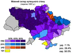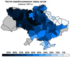 Частка єврейськомовних серед купців