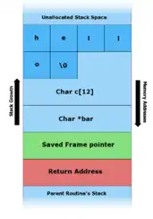 В програмах, переповнення буфера стеку трапляється, коли програма пише за адресами в програмному стеку виклику поза призначеною структурою даних; це зазвичай буфер фіксованої довжини.[1][2] Баг переповнення буфера стеку трапляється, коли програма пише більше даних в буфер розміщений в стеку, ніж було фактично виділено місця для буфера. Це майже завжди призводить до псування прилеглих даних в стеку, і в разі якщо переповнення було зроблено помилково, часто призводить до краху програми або некоректної роботи. Цей тип переповнення є одним з випадків загальнішого класу багів програмування, знаних як переповнення буфера.[1]