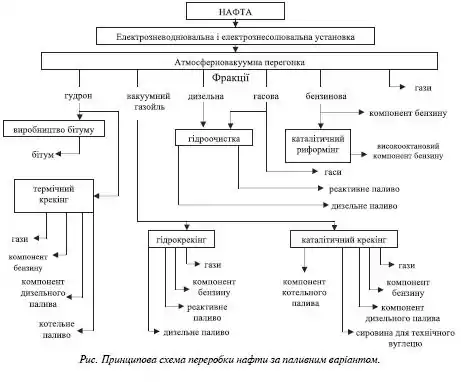 Переробка нафти — складний багатоступеневий технологічний процес, в результаті якого отримують широкий асортимент товарних продуктів, що відрізняються структурою, фізико-хімічними властивостями, складом і сферами використання. Розрізняють первинну і вторинну переробку нафти. На нафтопереробних підприємствах установки первинної, вторинної переробки і гідроочистки звичайно з'єднані в єдину технологічну схему (рис.).
