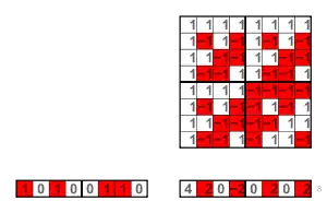 (1, 0, 1, 0, 0, 1, 1, 0) × H(8) = (4, 2, 0, −2, 0, 2, 0, 2)