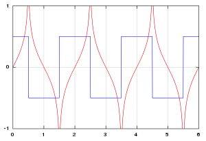 де означає перетворення Фур'є, а sgn це Signum-функція.