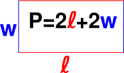 Периметр многокутника дорівнює сумі довжин його сторін. Зокрема, периметр прямокутника, що має ширину та довжину , дорівнює (див. рисунок).