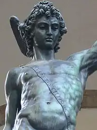 Сам Челліні вважав фігуру Персея найкращим своїм твором. Тому не оминув шанс відтворити власне ім'я на стрічці, що облягала ідеалізоване тіло міфічного героя.