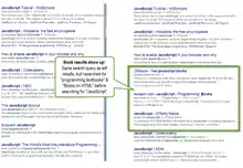 Наприклад, команда Portent виконала пошуковий запит для "JavaScript" (показано праворуч). А потім виконала пошук "Програмування підручників" та "Книги на HTML" перед пошуком "JavaScript", що змінило результати пошуку шляхом включення трьох списків книг, які не були частиною первісного набору результатів. Дослідження показало, що з різних факторів, що перевіряються, два з найбільш важливих фактори: чи був користувач зареєстрований з обліковим записом Google та IP-адреса пошукових користувачів. Це саме дослідження також перевіряло вплив персоналізації, використовуючи Amazon Mechanical Turk (AMT) (краудсорсинговий Інтернет-ринок та частину Amazon Web Services) та контрольну групу, щоб визначити різницю між ними. Результати показали, що найвищі за рейтингом URL-адреси рідше змінювалися на основі персоналізації, і чим нижчий ранг отриманих сторінок, тим більше на них впливає процес персоніфікації. [13]